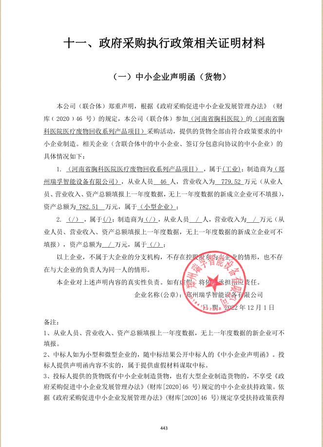 2、采購項目名稱:河南省胸科醫(yī)院醫(yī)療廢物回收系列產(chǎn)品項目