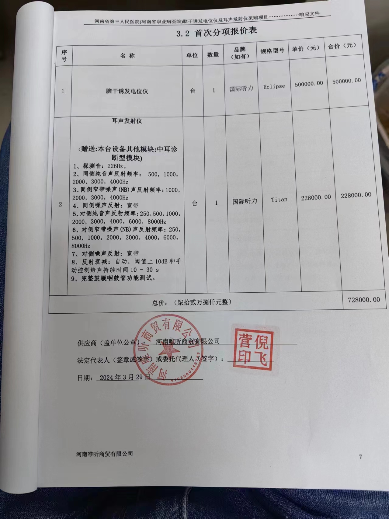 河南省第三人民醫(yī)院(河南省職業(yè)病醫(yī)院)腦干誘發(fā)電位儀及耳聲發(fā)射儀采購項(xiàng)目 | 河南唯聽商貿(mào)有限公司 | 安陽市北關(guān)區(qū)解放路鴻泰公寓1幢大樓中間辦公樓一樓大門東側(cè) | 723000.00 | 金額 | 元 | ||||