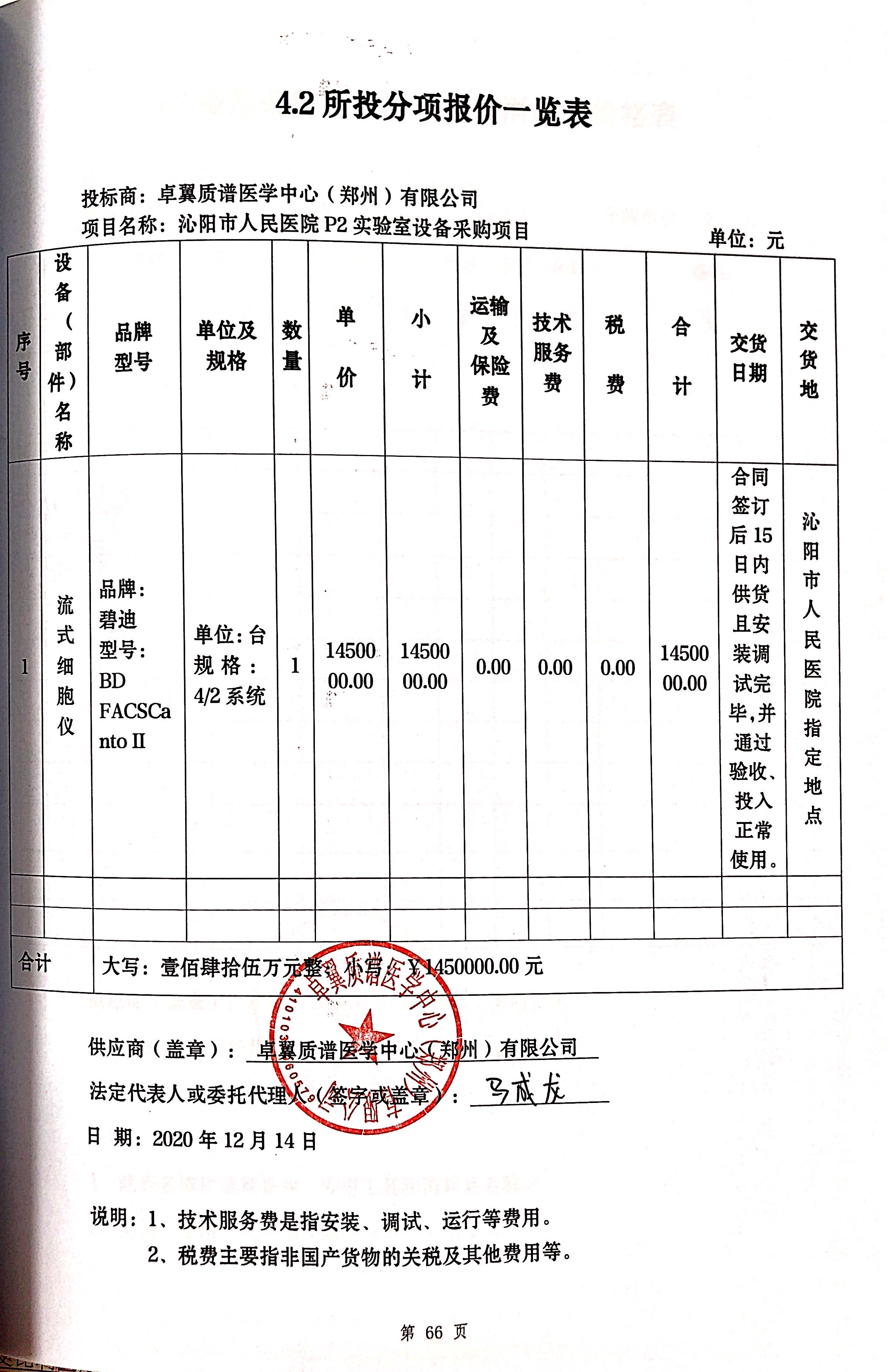 包1 | 流式細胞儀 | 卓翼質(zhì)譜醫(yī)學中心(鄭州)有限公司 | 河南省鄭州高新技術(shù)產(chǎn)業(yè)開發(fā)區(qū)金梭路33號1幢1單元8層835號 | 1450000.00 | 元 |