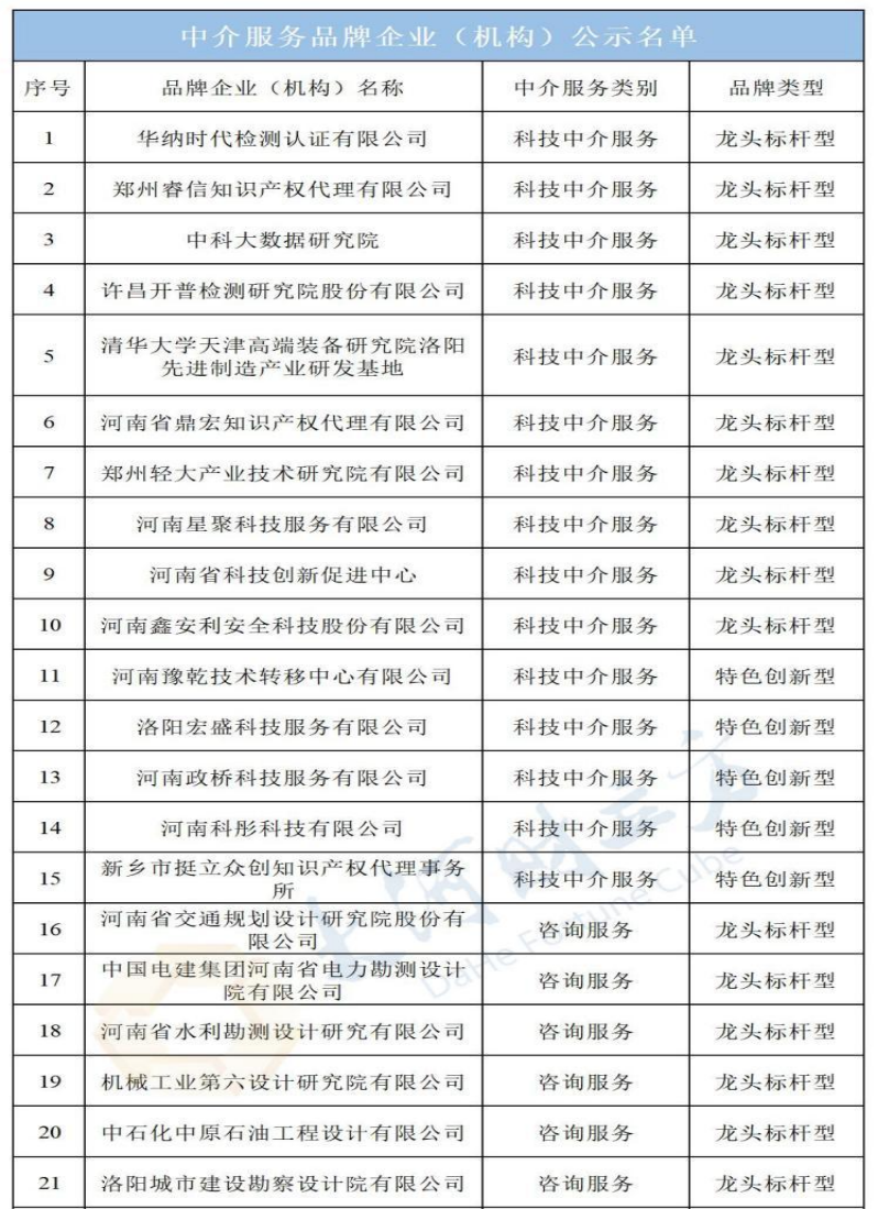 5月30日,河南省發(fā)展改革委公示了100家省級(jí)中介服務(wù)品牌企業(yè)(機(jī)構(gòu))名單。