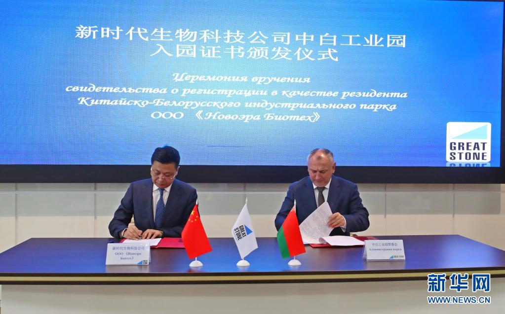 3月18日,在白俄羅斯首都明斯克郊區(qū)的中白工業(yè)園,工業(yè)園與入駐項目代表簽署入園協(xié)議。新華社發(fā)(任科夫攝)