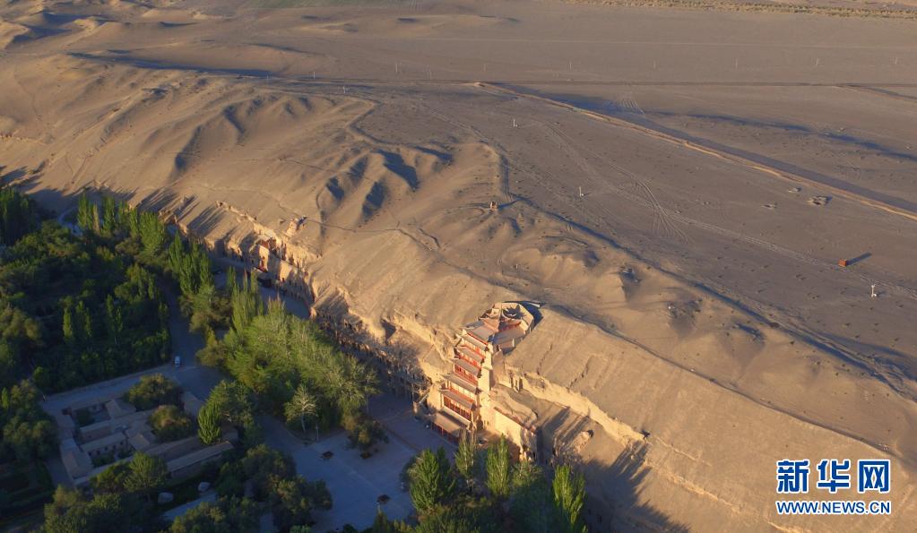 世界文化遺產(chǎn)莫高窟(2016年9月7日攝,無人機(jī)照片)。新華社記者 陳斌 攝