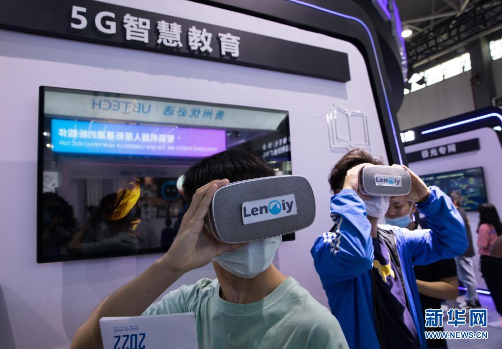 5月27日,在2021中國(guó)國(guó)際大數(shù)據(jù)產(chǎn)業(yè)博覽會(huì)展館,觀眾在體驗(yàn)5G智慧教育項(xiàng)目。新華社記者 金立旺 攝