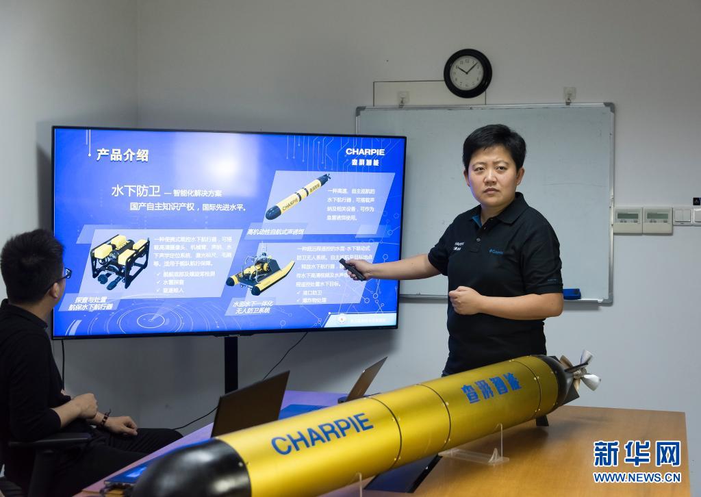 付斌向客戶介紹水下機器人產品(資料照片)。新華社發(fā)