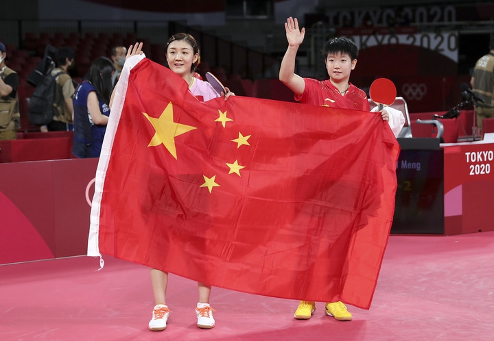 7月29日,在東京奧運會乒乓球女子單打決賽中,中國選手陳夢以4比2戰(zhàn)勝隊友孫穎莎,奪得冠軍。新華社記者 王東震 攝