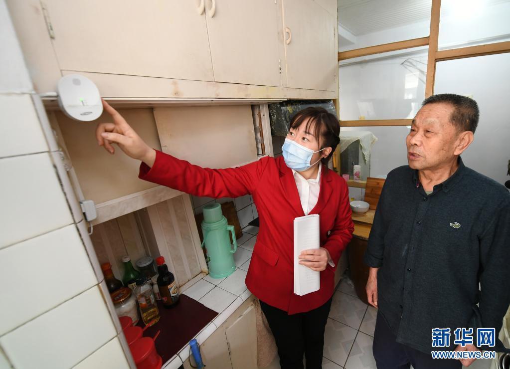 吉林省長春市長山花園社區(qū)黨委書記韓麗萍(左)到獨(dú)居老人家中檢查燃?xì)鈭?bào)警設(shè)備(資料照片)。新華社發(fā)