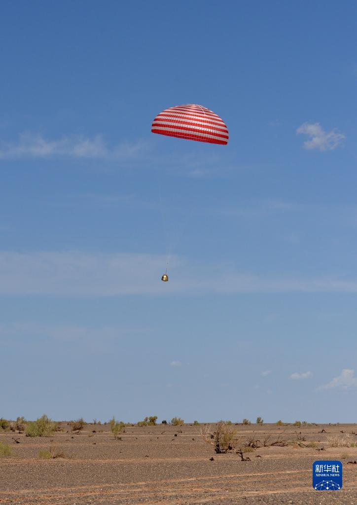 萬(wàn)眾矚目下,返回艙向東風(fēng)著陸場(chǎng)飛馳而來(lái)。
