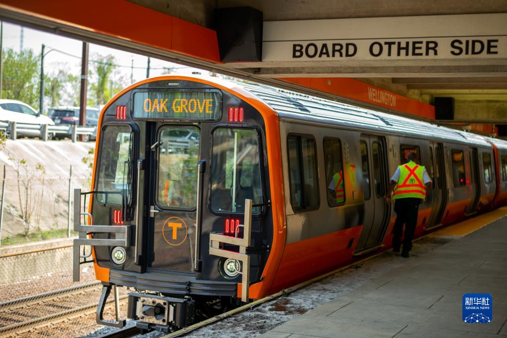 這是2018年5月15日在美國馬薩諸塞州梅德福德惠靈頓站拍攝的中車長客為波士頓橙線地鐵“量身訂制”的首批車輛。這批地鐵列車整車具有完全自主知識產(chǎn)權(quán),是中國首批依照美國標準生產(chǎn)的地鐵車輛。新華社記者 李木子 攝