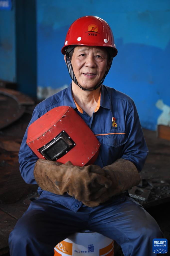 在湖南華菱湘潭鋼鐵有限公司廠房?jī)?nèi)拍攝的艾愛(ài)國(guó)(6月12日攝)。新華社記者 薛宇舸 攝