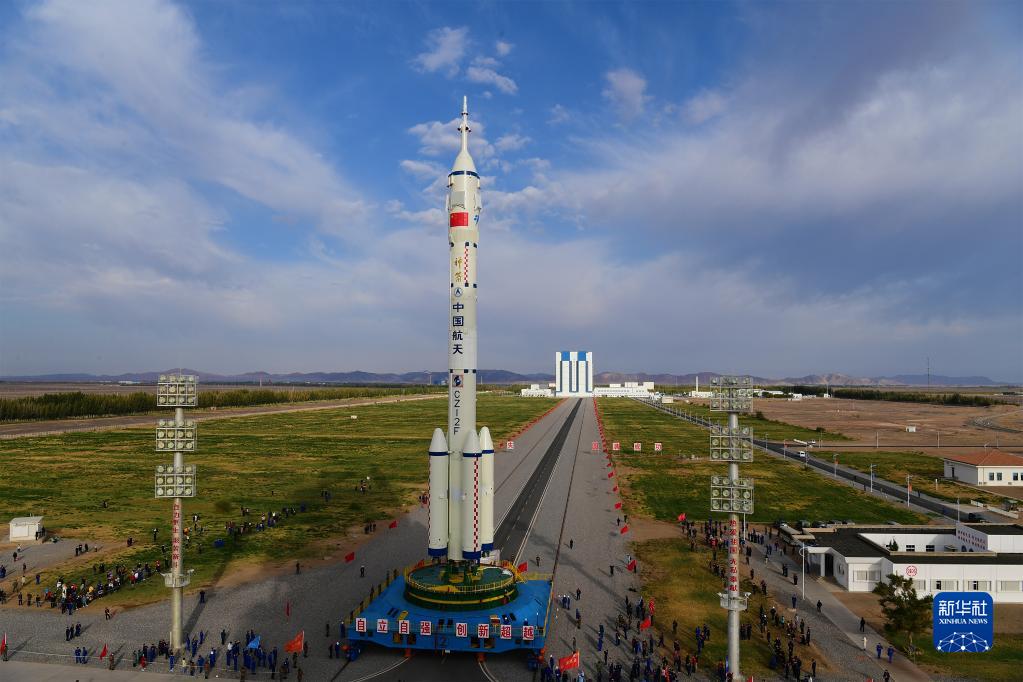 10月7日,神舟十三號載人飛船與長征二號F遙十三運載火箭組合體準備轉往發(fā)射區(qū)。新華社發(fā)(汪江波 攝)
