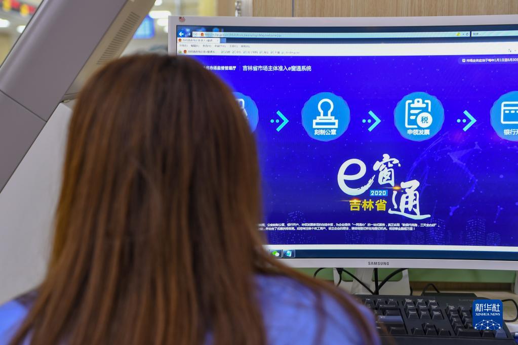在吉林省四平市政務(wù)大廳,工作人員通過“e窗通”系統(tǒng)為企業(yè)負責人服務(wù)(2020年9月8日攝)。新華社記者 張楠 攝