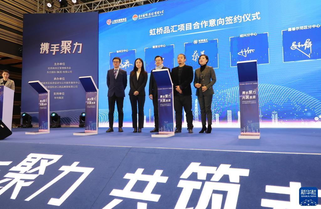 2020年12月30日,虹橋進(jìn)口商品展示交易中心長三角城市分中心授牌儀式在上海虹橋進(jìn)口商品展示交易中心舉行,來自長三角城市分中心的代表在儀式上簽署合作意向書。新華社記者 方喆 攝