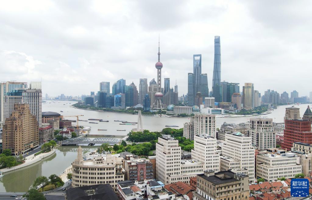 這是8月12日拍攝的上海黃浦江外灘區(qū)段兩岸樓群(無人機(jī)照片)。新華社記者 方喆 攝