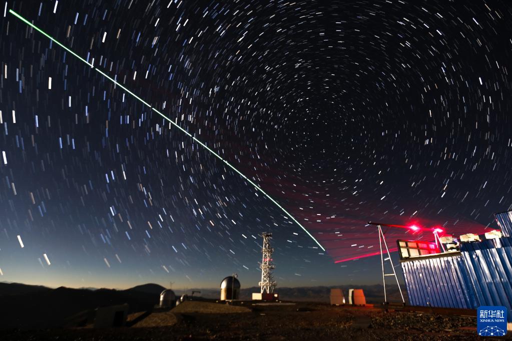 2016年12月9日,“墨子號”量子科學(xué)實(shí)驗(yàn)衛(wèi)星與阿里量子隱形傳態(tài)實(shí)驗(yàn)平臺建立天地鏈路(合成照片)。新華社記者 金立旺 攝