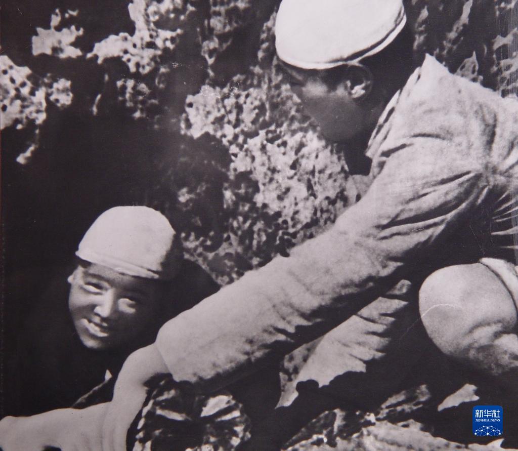 和戰(zhàn)友一起燒炭的張思德(左)(資料照片)。新華社發(fā)