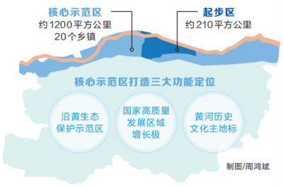 《規(guī)劃》明確了核心示范區(qū)打造沿黃生態(tài)保護示范區(qū)、國家高質(zhì)量發(fā)展區(qū)域增長極、黃河歷史文化主地標的三大功能定位和建設(shè)成為大保護大治理展示窗口、新理念新場景展示窗口和華夏源黃河魂展示窗口的發(fā)展定位。