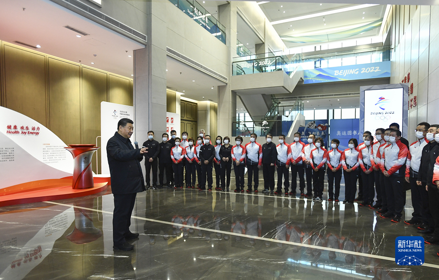 1月4日,中共中央總書記、國家主席、中央軍委主席習(xí)近平在北京考察2022年冬奧會、冬殘奧會籌辦備賽工作。這是4日下午,習(xí)近平在二七廠冰雪項(xiàng)目訓(xùn)練基地速滑館,向參訓(xùn)運(yùn)動員、教練員表示慰問。新華社記者 謝環(huán)馳 攝