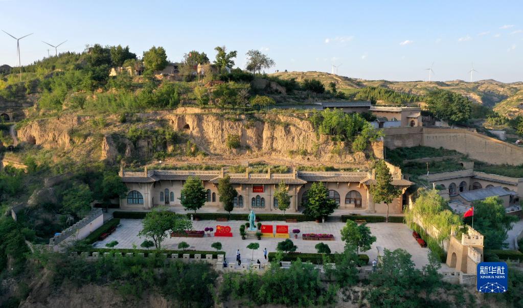 游人在陜西省榆林市米脂縣楊家溝革命舊址參觀(2021年9月10日攝,無(wú)人機(jī)照片)。新華社記者 陶明 攝