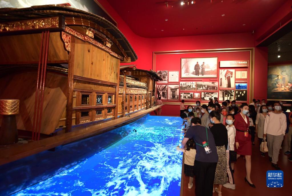 觀眾在中國(guó)共產(chǎn)黨歷史展覽館參觀(2021年10月1日攝)。新華社記者 李賀 攝