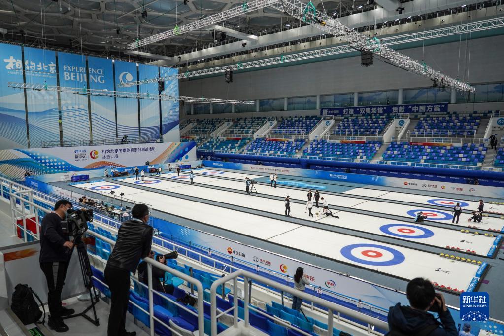 2021年4月6日,運(yùn)動(dòng)員在冰壺項(xiàng)目測(cè)試活動(dòng)中。2022年北京冬奧會(huì)將國(guó)家游泳中心“水立方”改造為“冰立方”,用作冰壺項(xiàng)目比賽場(chǎng)館,有效減少建設(shè)投資,更讓夏奧場(chǎng)館煥然新生,拓展多元賽后經(jīng)營(yíng)能力。新華社記者 彭子洋 攝
