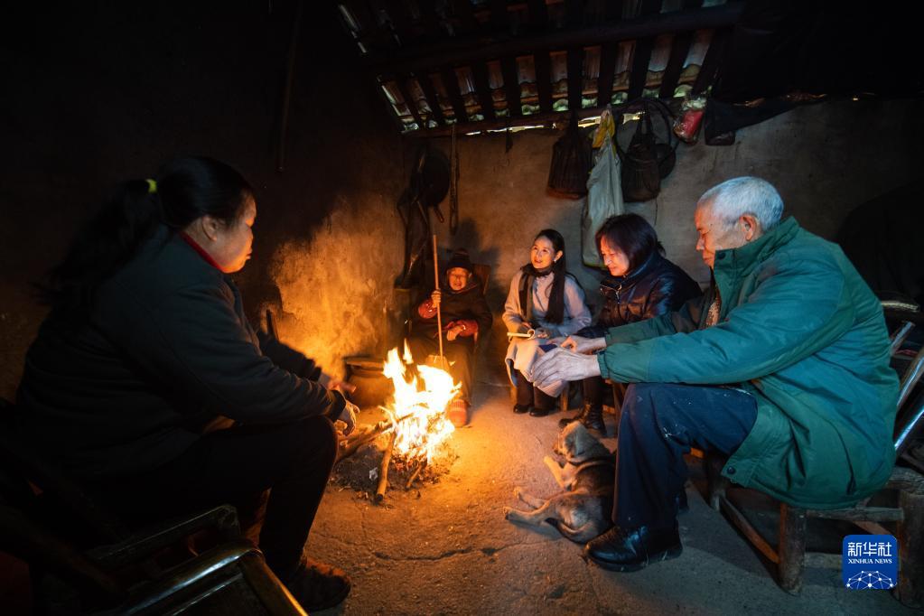 浙江省桐廬縣鐘山鄉(xiāng)鄉(xiāng)賢代表、民宿業(yè)主代表、桐廬縣鄉(xiāng)兩級(jí)人大代表以及黨員和村民代表在鐘山鄉(xiāng)參加“新村夜話”討論活動(dòng)(2021年2月22日攝)。新華社記者 徐昱 攝