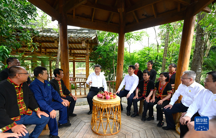 4月10日至13日,中共中央總書記、國家主席、中央軍委主席習(xí)近平在海南考察。這是11日下午,習(xí)近平在五指山市水滿鄉(xiāng)毛納村同村民們親切交流。新華社記者 謝環(huán)馳 攝