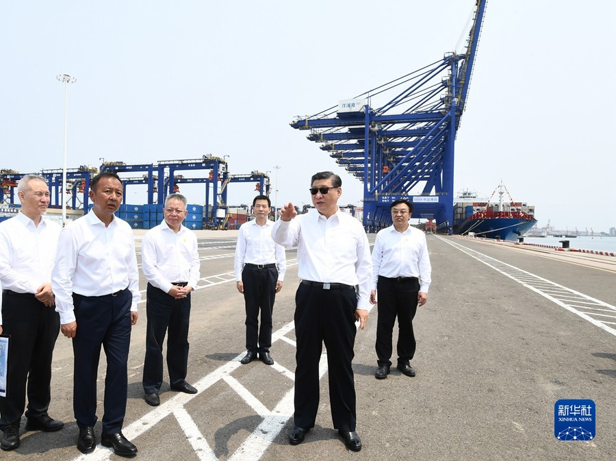 隨后,習(xí)近平來到洋浦國際集裝箱碼頭小鏟灘港區(qū),了解港口建設(shè)發(fā)展情況,同現(xiàn)場作業(yè)人員、掛職干部代表等親切交流。習(xí)近平強(qiáng)調(diào),振興港口、發(fā)展運(yùn)輸業(yè),要把握好定位,增強(qiáng)適配性,堅持綠色發(fā)展、生態(tài)優(yōu)先,推動港口發(fā)展同洋浦經(jīng)濟(jì)開發(fā)區(qū)、自由貿(mào)易港建設(shè)相得益彰、互促共進(jìn),更好服務(wù)建設(shè)西部陸海新通道、共建“一帶一路”。他指出,黨中央選派干部來自由貿(mào)易港掛職,既體現(xiàn)了黨中央對自由貿(mào)易港建設(shè)的關(guān)心和支持,也是對干部的培養(yǎng)鍛煉,要發(fā)揮掛職干部的積極作用,讓他們在基層一線增長才干。