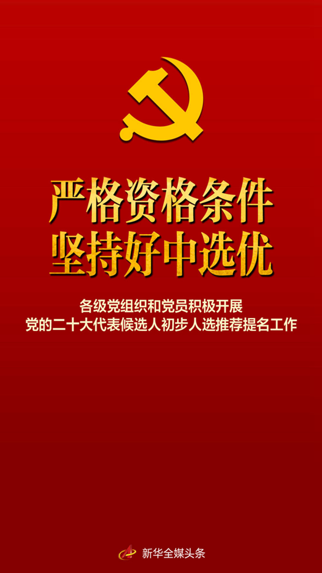 ??新華社北京4月20日電 題:嚴格資格條件 堅持好中選優(yōu)——各級黨組織和黨員積極開展黨的二十大代表候選人初步人選推薦提名工作