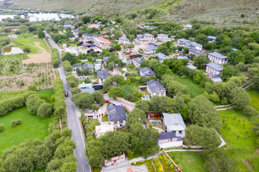俯瞰林芝市巴宜區(qū)林芝鎮(zhèn)嘎拉村(無人機(jī)照片,2021年7月21日攝)。新華社記者 普布扎西 攝
