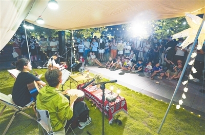 夜幕降臨,華燈初上,市區(qū)街頭巷尾開始熱鬧起來:夏季集市里,人群熙熙攘攘,交談聲、討價聲交織在一起;書店里,老人、年輕人、孩子靜坐閱讀;健身房里,跑步、練瑜伽,各有所愛;小廣場,音樂愛好者現(xiàn)場開唱……
