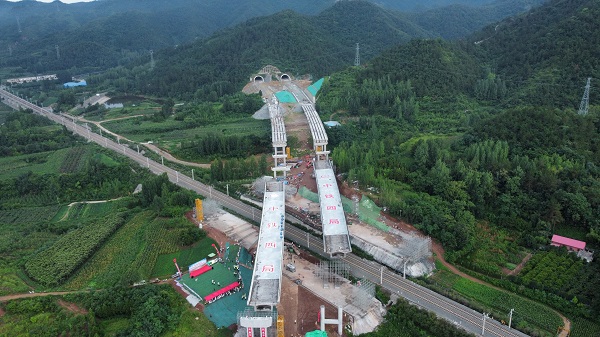新華網(wǎng)鄭州7月28日電 7月27日下午,隨著兩個(gè)預(yù)應(yīng)力混凝土T構(gòu),重量為17000噸的轉(zhuǎn)體梁在空中同步“華麗轉(zhuǎn)身”和精準(zhǔn)對(duì)接,標(biāo)志著由中鐵四局承建的河南省首個(gè)公路雙幅跨鐵路轉(zhuǎn)體梁成功轉(zhuǎn)體,為澠淅高速項(xiàng)目順利通車(chē)奠定了堅(jiān)實(shí)基礎(chǔ)。