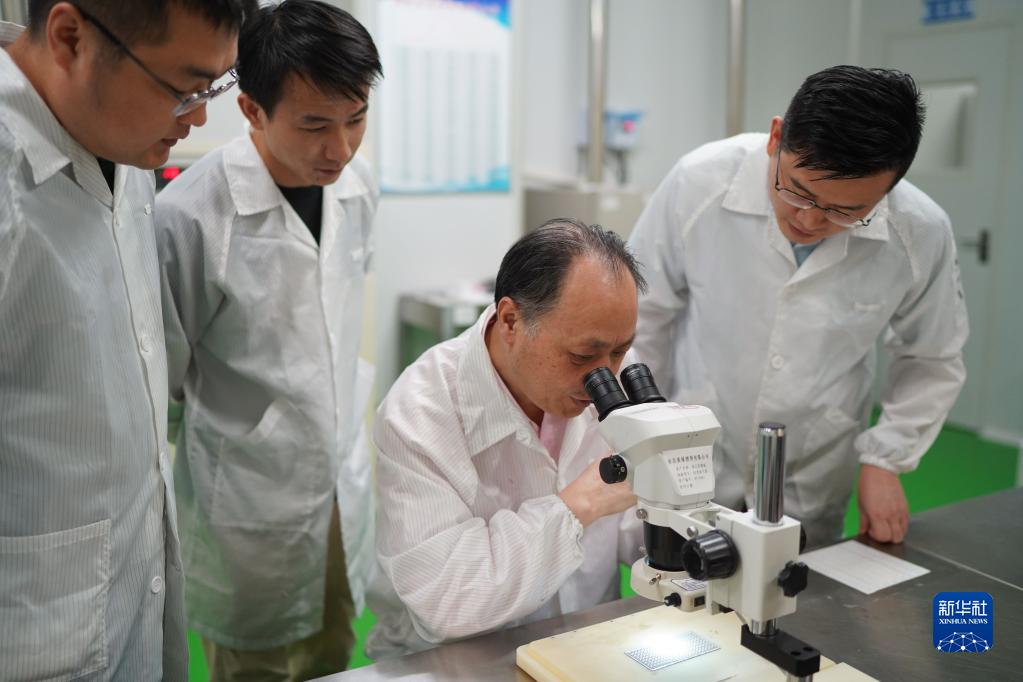 江風益在位于南昌高新區(qū)的實驗室內與團隊成員一起工作(2022年8月5日攝)。新華社記者 周密 攝