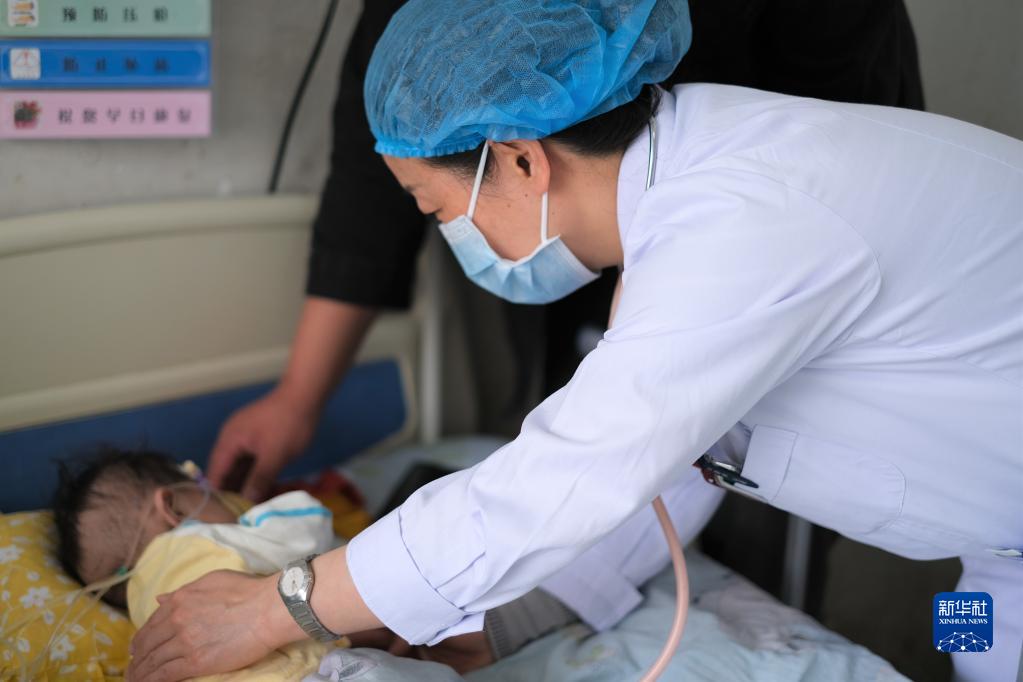青海省婦女兒童醫(yī)院醫(yī)生、青南支醫(yī)隊員孫敬在青海省玉樹藏族自治州人民醫(yī)院給患者檢查身體(2022年4月25日攝)。新華社記者 韓方方 攝