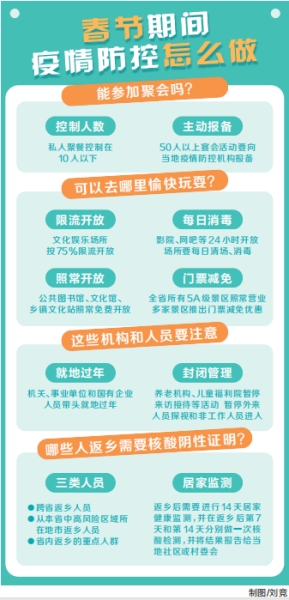 省衛(wèi)健委副主任張若石介紹,近日,省疫情防控指揮部就進一步做好當前新冠肺炎疫情防控工作、特別是冬春季農村地區(qū)疫情防控下發(fā)通知,要求各地激活疫情應急指揮體系,堅持24小時值班值守,嚴格執(zhí)行“日報告”“零報告”制度。要求減少大型聚集性活動,減少聚餐,減少人員流動。50人以上活動要制定防控方案,嚴格落實防控措施。文化娛樂場所按75%限流開放,影院、網吧等24小時開放場所要每日清場、消毒。私人聚餐控制在10人以下,50人以上宴會活動要向當地疫情防控機構報備。機關、事業(yè)單位和國有企業(yè)人員帶頭就地過年。