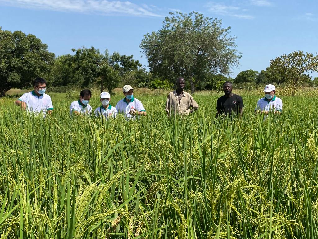 這是2021年7月13日,中國專家組成員在布基納法索中西大區(qū)水稻示范區(qū)查看苗情。新華社發(fā)(中國農(nóng)業(yè)組供圖)
