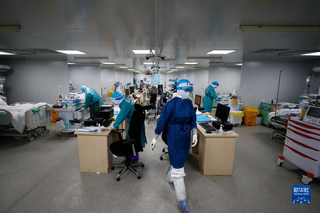 在武漢火神山醫(yī)院,重癥一科醫(yī)護人員緊張忙碌(2020年2月24日攝)。新華社發(fā)(王皓宇 攝)