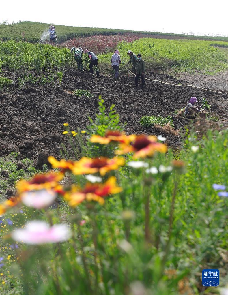 2022年6月2日,工人在遼寧撫順西露天礦內(nèi)植樹(shù)。新華社記者 楊青攝