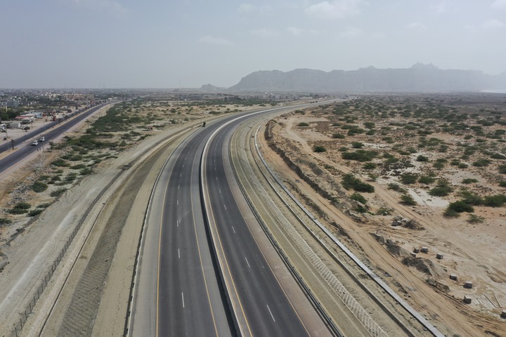 這是在巴基斯坦西南部俾路支省瓜達(dá)爾航拍的瓜達(dá)爾東灣快速路。