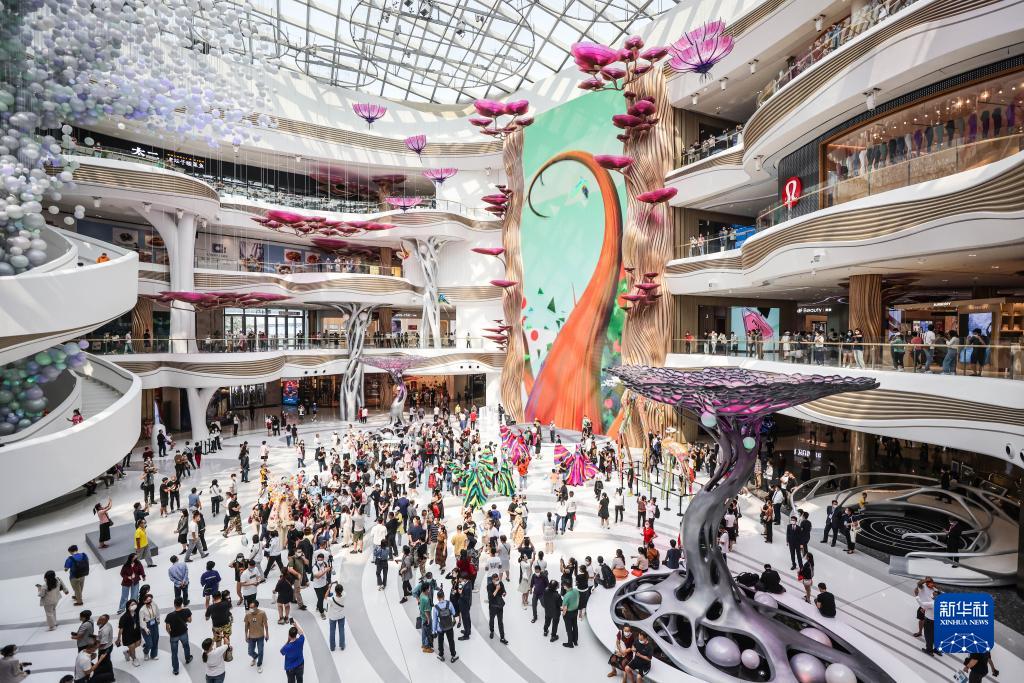 消費(fèi)者在海南海口國(guó)際免稅城內(nèi)購(gòu)物(2022年10月28日攝)。新華社記者 張麗蕓 攝