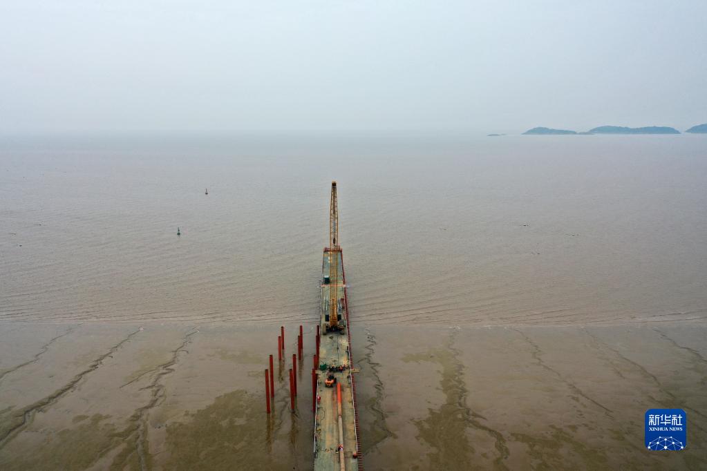 工程人員在通蘇嘉甬高鐵杭州灣跨海鐵路大橋施工現(xiàn)場(chǎng)鋪設(shè)棧橋,為后期工程做準(zhǔn)備(2023年2月1日攝,無(wú)人機(jī)照片)。2022年11月30日開(kāi)工建設(shè)的通蘇嘉甬高鐵杭州灣跨海鐵路大橋全程跨海,總長(zhǎng)約29.2公里,為設(shè)計(jì)時(shí)速350公里的雙線(xiàn)高速鐵路橋,是目前世界上在建長(zhǎng)度最長(zhǎng)、建設(shè)標(biāo)準(zhǔn)最高的高速鐵路跨海大橋。新華社記者 黃宗治 攝