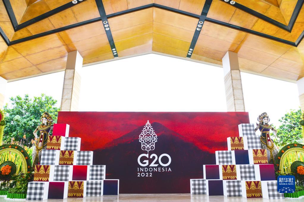這是在印度尼西亞巴厘島拍攝的二十國集團領(lǐng)導(dǎo)人第十七次峰會會場外的標識(2022年11月11日攝)。新華社記者 徐欽 攝