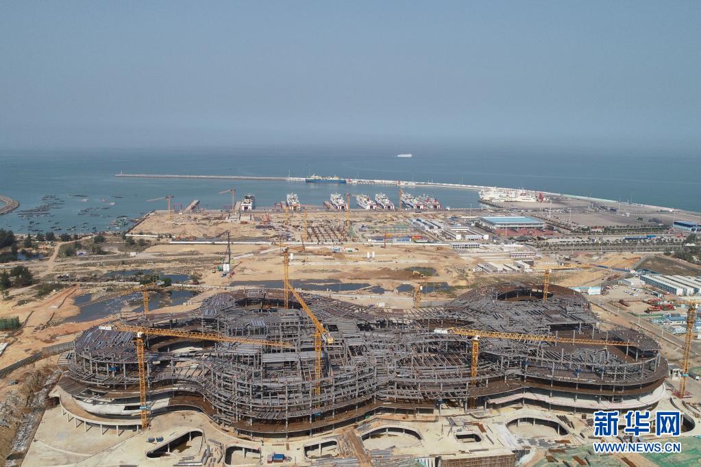 這是2月20日拍攝的海口國際免稅城項(xiàng)目施工現(xiàn)場(無人機(jī)照片)。新華社記者 張麗蕓 攝
