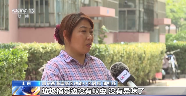 青島西海岸新區(qū)鐵路小區(qū)居民 鄒桂紅:垃圾桶旁邊沒有蚊蟲、沒有異味了,很整潔、很干凈,小區(qū)的整體環(huán)境也提升上去了,所以說我們特別想把垃圾分類分好,感覺居住在這個(gè)環(huán)境很舒服。