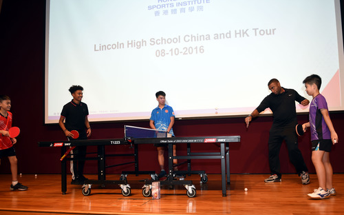 2016年10月8日,香港乒乓球運動員與林肯中學(xué)學(xué)生進行交流比賽。當日,來自美國華盛頓州塔科馬市林肯中學(xué)的師生到訪香港體育學(xué)院。