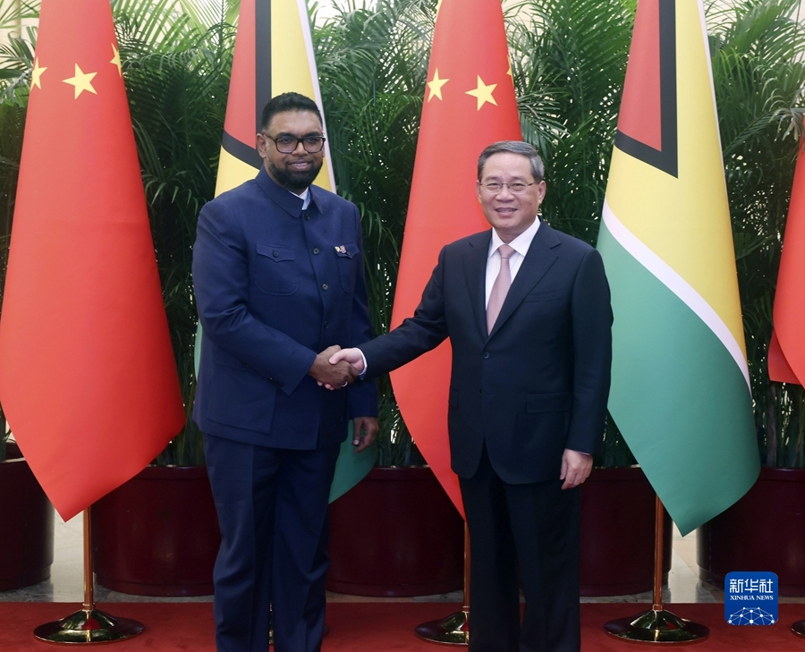 7月30日下午,國務(wù)院總理李強(qiáng)在北京人民大會堂會見來華出席第31屆世界大學(xué)生夏季運(yùn)動(dòng)會開幕式并訪華的圭亞那總統(tǒng)阿里。新華社記者 劉衛(wèi)兵 攝