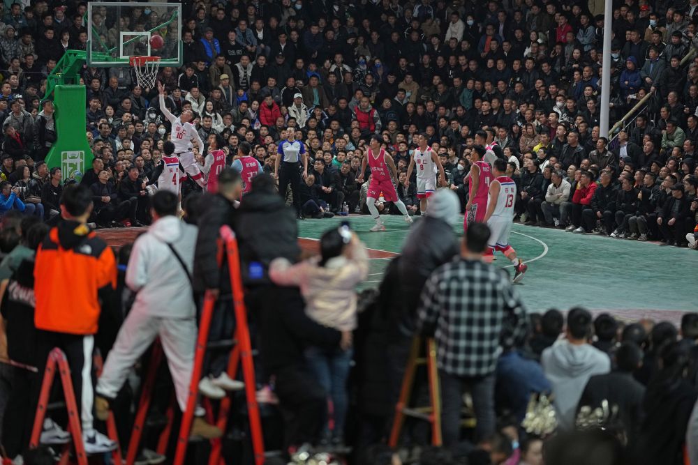 2023年3月25日,當(dāng)?shù)厝罕娪^(guān)看貴州省首屆“美麗鄉(xiāng)村”籃球聯(lián)賽總決賽。新華社記者 李尕 攝