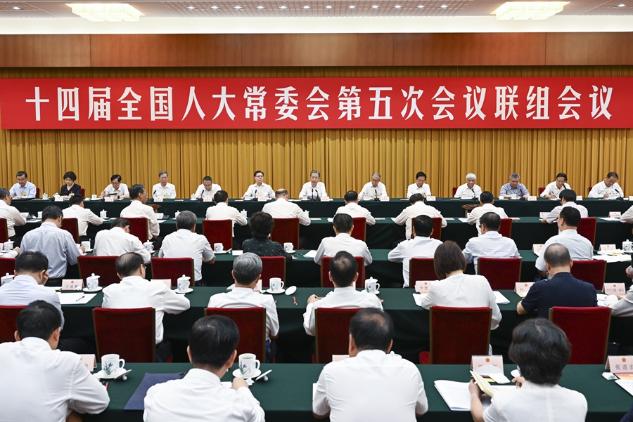 8月30日上午,十四屆全國人大常委會第五次會議在北京人民大會堂舉行聯(lián)組會議,審議國務院關于確保國家糧食安全工作情況的報告并開展專題詢問。趙樂際委員長主持并講話。新華社記者 張領 攝