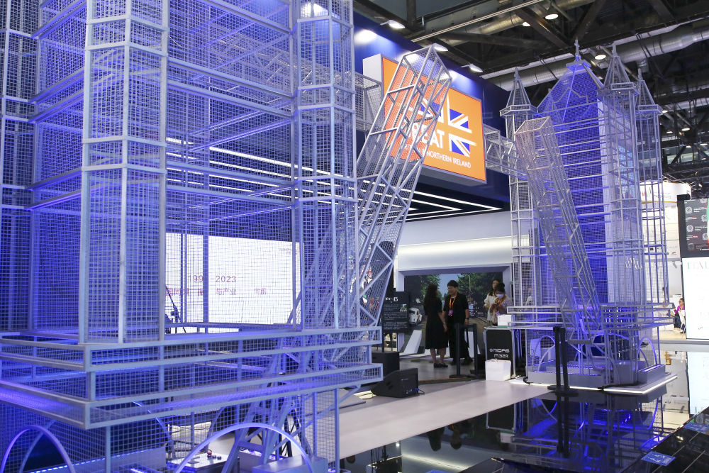國(guó)家會(huì)議中心綜合展區(qū)內(nèi),主賓國(guó)英國(guó)國(guó)家館展臺(tái)前參觀者絡(luò)繹不絕。英國(guó)體育科技企業(yè)REZZIL運(yùn)營(yíng)部主管克萊福德正忙著為中國(guó)參觀者展示公司的虛擬現(xiàn)實(shí)互動(dòng)產(chǎn)品。
