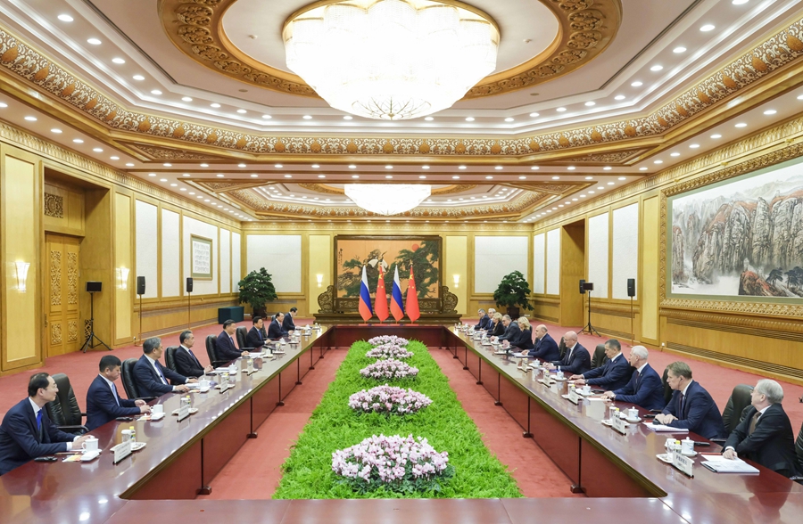 習(xí)近平強(qiáng)調(diào),中國經(jīng)濟(jì)韌性強(qiáng)、潛力大、回旋余地廣、長期向好的基本面沒有改變。中國堅(jiān)定推動(dòng)高質(zhì)量發(fā)展,推進(jìn)高水平對(duì)外開放,將為包括俄羅斯在內(nèi)的各國發(fā)展提供新機(jī)遇。雙方要充分發(fā)揮政治互信、經(jīng)濟(jì)互補(bǔ)、設(shè)施互聯(lián)、民心互通優(yōu)勢(shì),不斷豐富合作內(nèi)涵,深化經(jīng)貿(mào)、能源、互聯(lián)互通等領(lǐng)域合作,共同維護(hù)產(chǎn)業(yè)鏈供應(yīng)鏈安全穩(wěn)定。雙方要辦好明后兩年中俄文化年,多設(shè)計(jì)、多開展豐富多彩的人文交流活動(dòng),夯實(shí)兩國世代友好的社會(huì)和民意基礎(chǔ)。