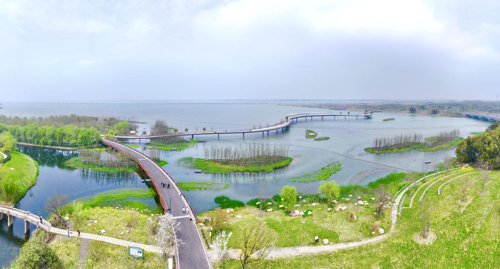 ??這是連接上海青浦和江蘇吳江兩地的元蕩慢行橋(2024年3月31日攝,無人機照片)。漫步橋上,大好風(fēng)光盡收眼底。同心結(jié)形狀的元蕩慢行橋,是長三角一體化發(fā)展的生動注腳之一。